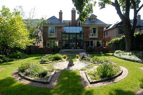 The unusual charcoal/dark window frames and red bricks combination gives the house a stately yet modern feel.